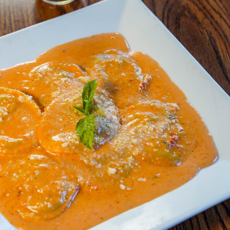 Ravioli pasta stuffed with spinach and buffalo ricotta served in a blush sauce.