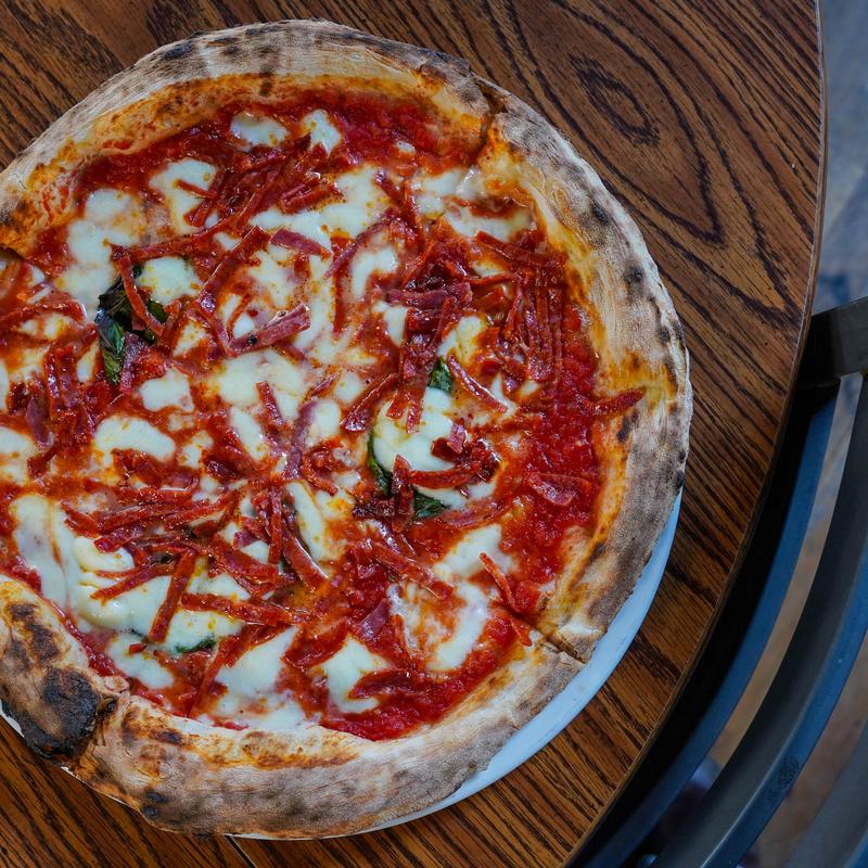 Buffalo mozzarella, tomato sauce, buffalo ricotta, spicy sopressata, fresh basil, Pecorino Romano.